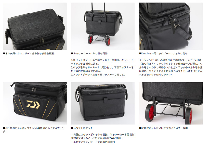 | 特別感を追求したダイワへらバッグの最高峰! 迫力と存在感のあるクロコダイル調のデザインを採用。カラーリングにもこだわり特別感のあるへら専用バッグを実現。 本体は汚れや水に強い防水生地を採用し、お手入れが簡単。 内部にはハードインナーを内蔵しており、お手入れの際に取り外し可能。 エサやゴミ等のお手入れも簡単に行うことが可能。 背面のスリットポケットは2WAY仕様。 玉網やフラシ、シート等を入れるポケットとして使用、キャリーカートを取り付けて使用することが可能。 注;同時にお買い上げの商品(竿ケースなど)によって送料が2個口になることがございます。ご注文後、メールにてお知らせ致します。ご了承下さい。 |