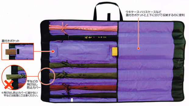 へら竿を尺数別に収納できて取り出しやすい仕分けポケット搭載