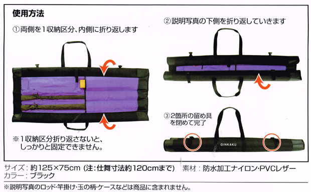 竿ケースサイズ;125×75cm(仕舞寸法120cmまで)