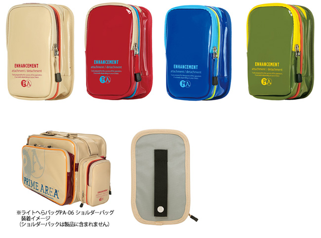 | 「ライトへらバッグPA-06 ショルダーバッグ」を自分好みにカスタマイズ 「ライトへらバッグPA-06 ショルダーバッグ」の『モールシステム』に装着できるアタッチメントです。2つの大きなポケットは財布やスマートフォンなどの小物をまとめて収納できます。下の物が取りやすいよう、ファスナーを長めに取り付けました。 |