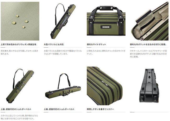 | 余裕の収納力を誇る三層構造と各種ポケット。 大型パラソルもセットして持ち運べるへら専用ロッドケース。 余裕の収納力を誇る三層構造のロッドケースです。本体側面には新構造のパラソルホルダーを配置。ベルト長を調整することで大型のパラソルまで対応できます。本体の内外に設けたポケットは、ウキケースやハリケースなどの小物類をスマートに収納可能です。表面生地は防水性あるポリウレタンを採用。雨を弾き、粉エサなどが付着してもサッと拭き取れます。肩ベルトはスタイルに応じてハンドル側、背中側のどちら側にも取り付けることができます。 注;この商品は同時にお買い上げの商品によって(バッグなど)、送料が2個口になる場合があります。ご注文後にメールにてお知らせ致します。 |