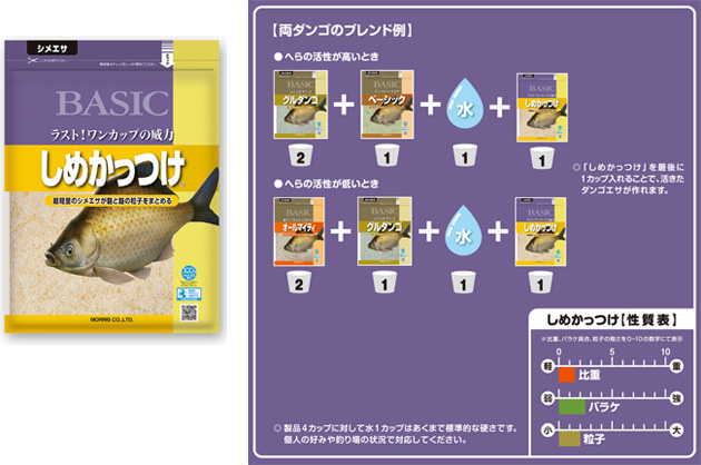 超軽量のシメエサが麩と麩の粒子をまとめる。