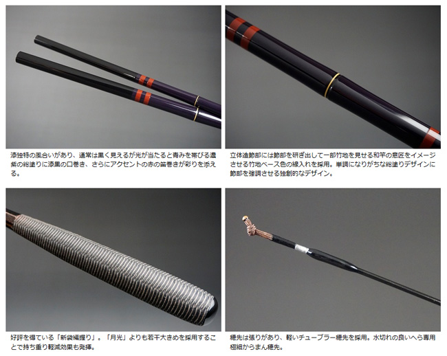| この剛さ、向かう所敵なし。 野や管理釣り場の大型べらを力でねじ伏せて獲るために開発された硬式並継へら竿。そのパワーランク(硬さ)はダイワ並継へら竿の最高ランクに位置するが、一方で単なる硬さだけでなく『株理論』設計に裏打ちされた高バランスにより、しっかりと胴に乗りながらへらに主導権を与えず、一気に水面へと導く。漆独特の青味の風合いを持つ黒の総塗りに漆黒の口巻きをベースに赤の笛巻きが彩りを添える。さらに節部には研ぎ出しを思わせる竹色を加えたこれまでにないこだわりのデザインも釣り場で存在感を主張する。春の乗っ込みの釣りから、流れ川などの野釣りは勿論、盛期の大型管理釣り場での数釣りまで広範囲にカバーする6〜21尺までのワイドバリエーションも魅力。へらぶな釣りの豪快な魅力の一面を全面サポートする一竿。 |
