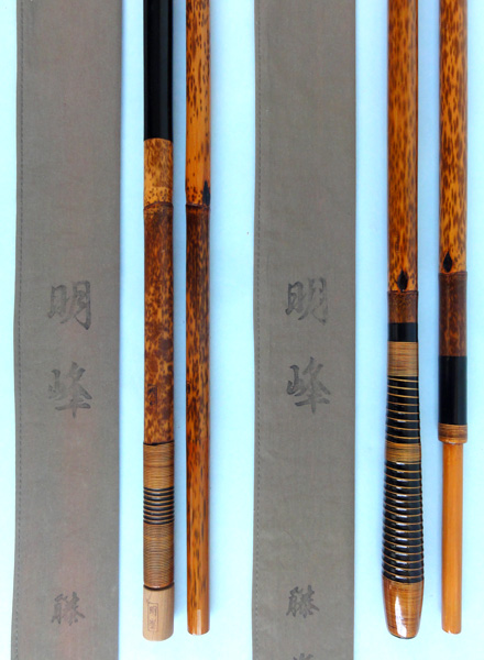 明峰 紋竹 竿掛け2本 玉の柄2本 セット