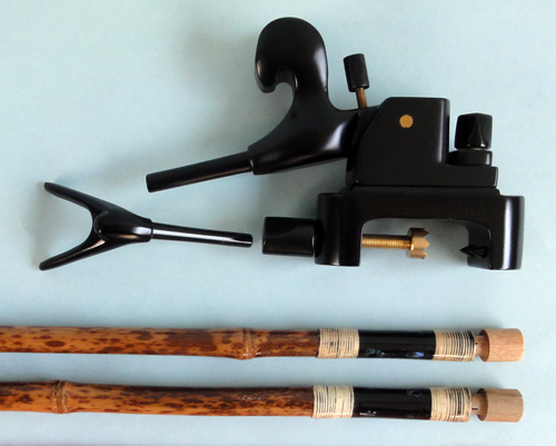 コミ調整不要で購入後すぐに使える、1本半物の竿掛けと黒檀大砲万力カリンのセットです。