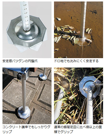 護岸をしっかり噛み、泥地(デルタ)では大きい円盤爪で沈まない。