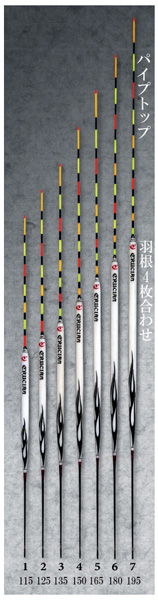 | トップ;パイプトップ トップ径:1.0φ〜1.8φ ボディ;羽根4枚合せ ボディφ:6.5 足 ; カーボン 足径:1.6φ〜1.3φ |