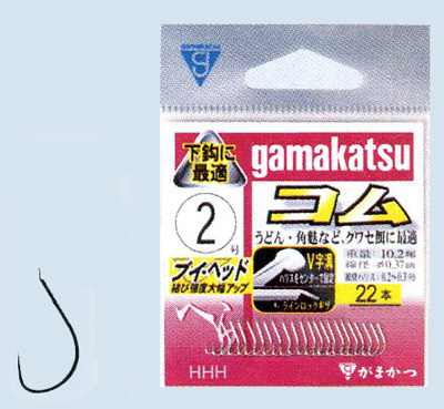 鈎先の角度はささり込みのよい内向きで、強く吸い込まれた時にも飲まれにくく自然に口元に掛かります。フトコロのカーブにのみ腹打ち加工を施し、フトコロ強度をアップし餌持ちも向上。万能タイプですが、各種クワセ餌使用時に最適です。チモトVヘッド加工採用で、ハリスの結節強度を向上させました。