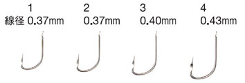 これを解決するために、独自のポイント打ち形状を持たせ、吸い込みの良い柔らかいオカメでもエサ抜けしにくい鈎となりました。