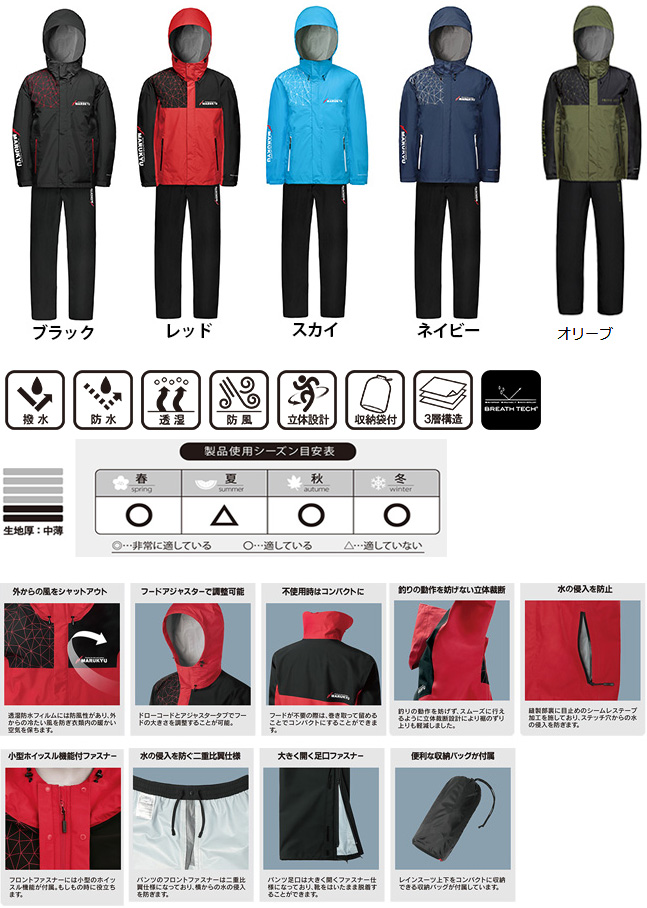 雨・風を防ぎ釣りを快適にする透湿性に優れたスタンダードレインスーツ。