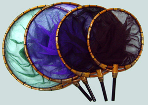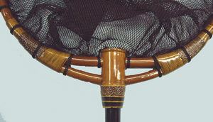 サメ皮巻き竹枠で、2.5mm目の網を使用。網の色はお任せ下さい。