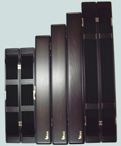 | 前金具は凹を指平でスライドさせる新形式、締めた位置からもパチッと締まります。箱の口元を確実に締め、箱から金具の凸が僅かです。箱表面は深みある味わいの黒色艶消し塗装仕上げ。浮子の色が引き立つグリーンカラーの中敷シート、浮子足を確実に留める金鯱オリジナル足留め。箱の厚みを薄くしたスリムタイプです。 | ||