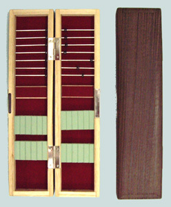 コンパクトな焼桐のハリスケースを大奉仕。細かい間隔で針掛けがあるため、正確な釣りをすることができます。焼桐の木目が美しい商品です。