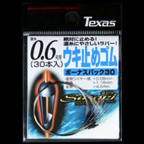 道糸サイズ別の規格により、必ず止める!道糸にキズをつけない、やさしいラバー。ワイヤーがセンターを貫通しているため、切れません。使いきりミニパックもあります。